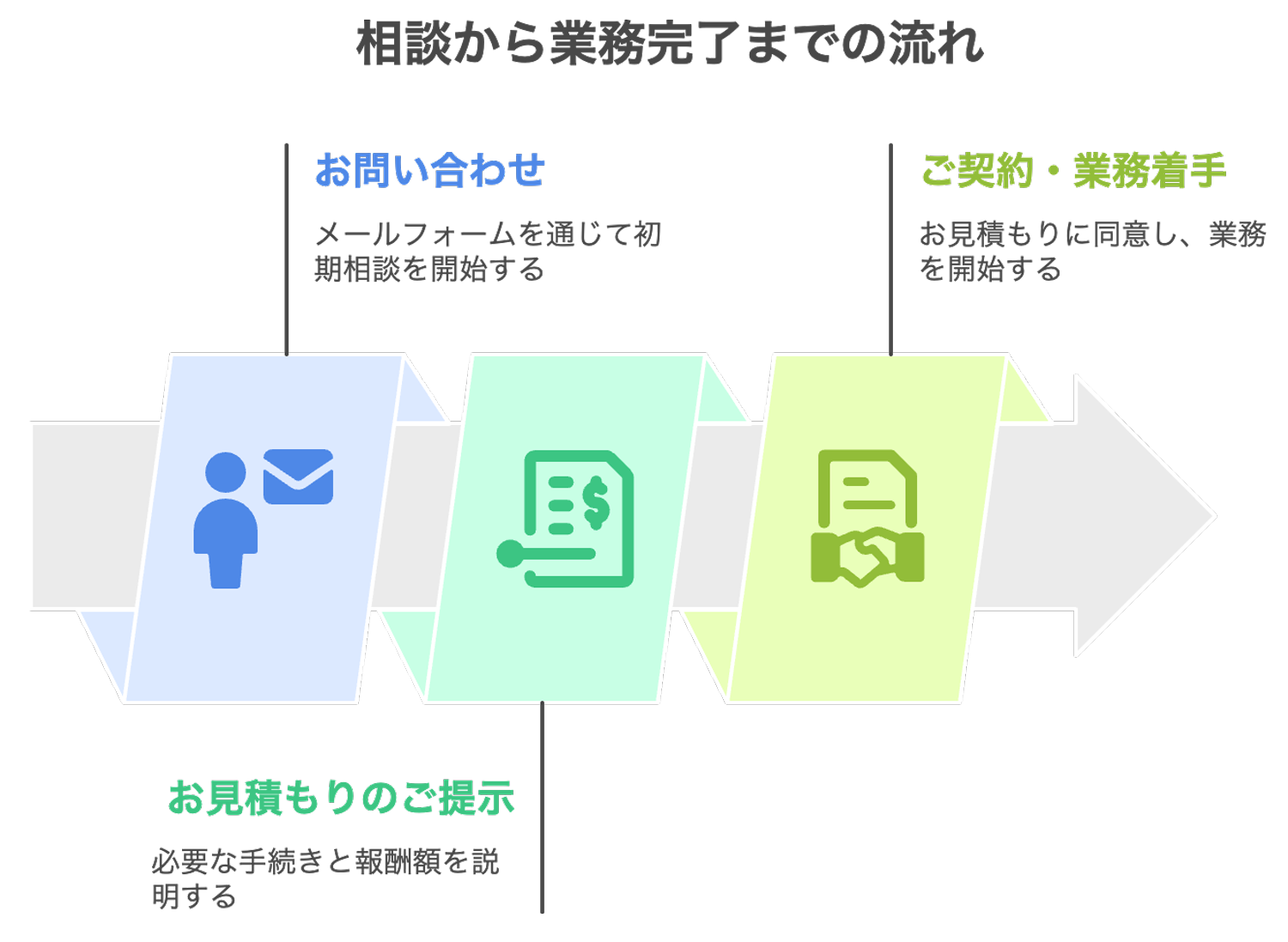 お伺いした内容に基づき、必要な手続きと報酬額を分かりやすくご説明し、正式なお見積書をご提示します。